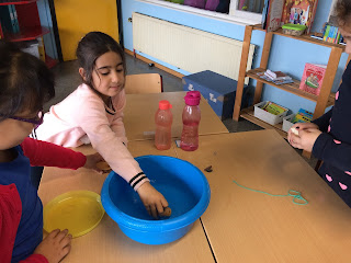 Natuurlijk moesten we ook zelf op zoek gaan welke materialen gingen drijven en zinken.